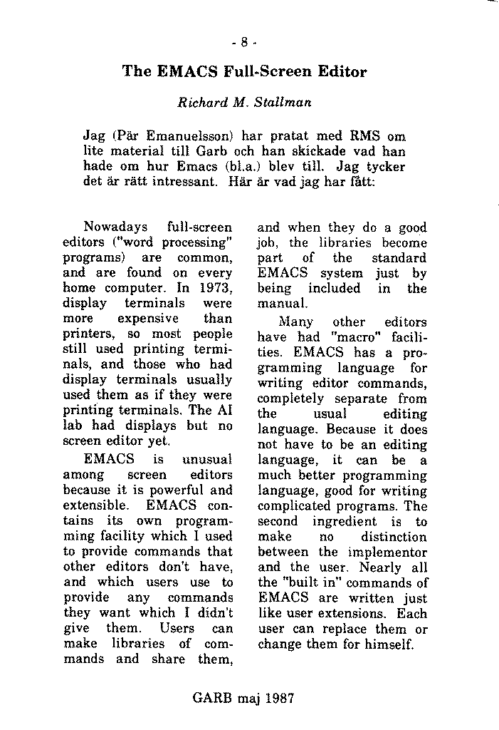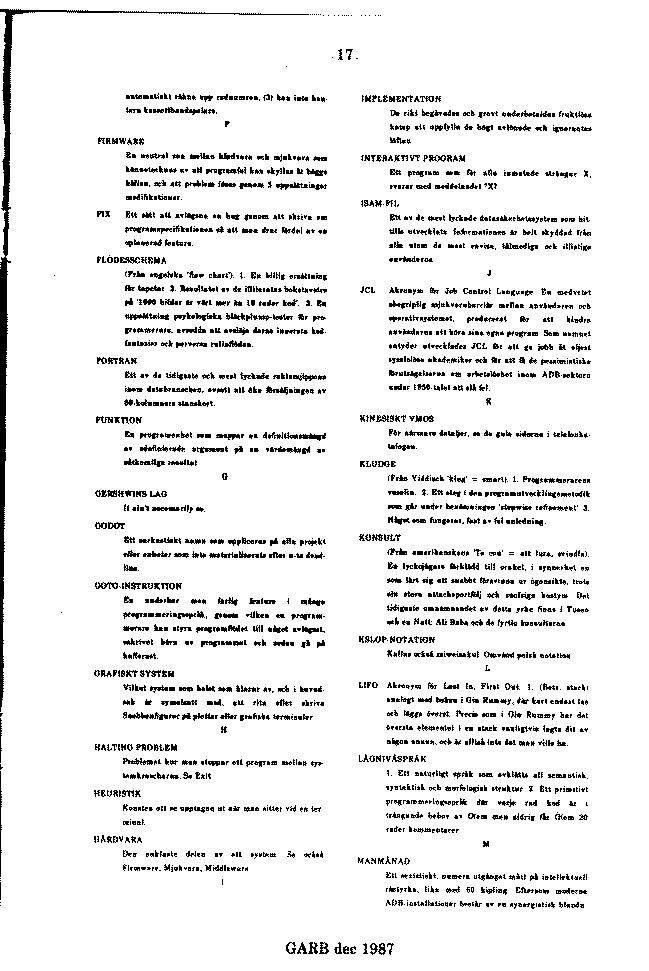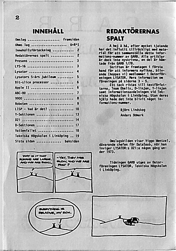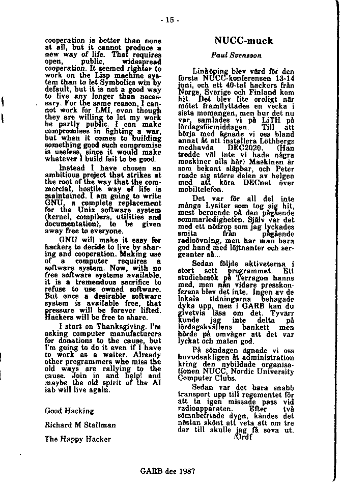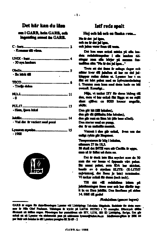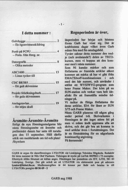 GARB is Lysator's own magazine. It is published irregularly since 1978.