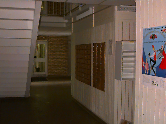 - Trapphus med postfack.