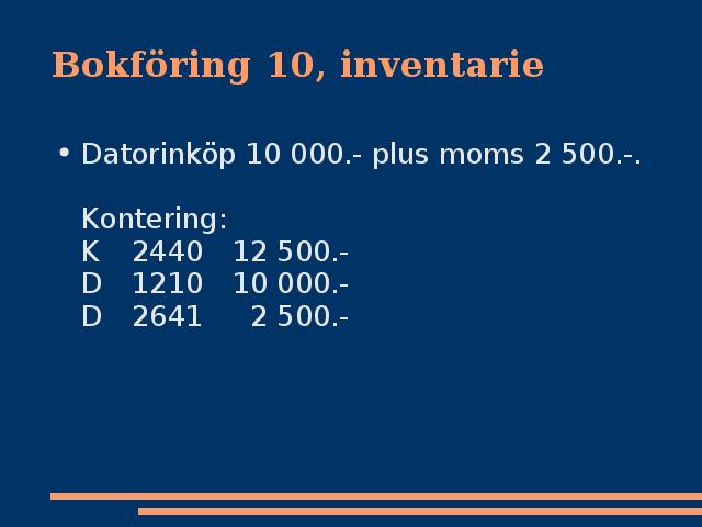 Se alltid till att föra upp vilka inventarier du köpt på firman i en lämplig sammanställning, t ex i ditt favorit-ordbehandlingsprogram (eller favorit-editor med inbyggt programmeringsspråk).