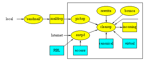 indicated with the unlabeled arrow). The Postfix system can be