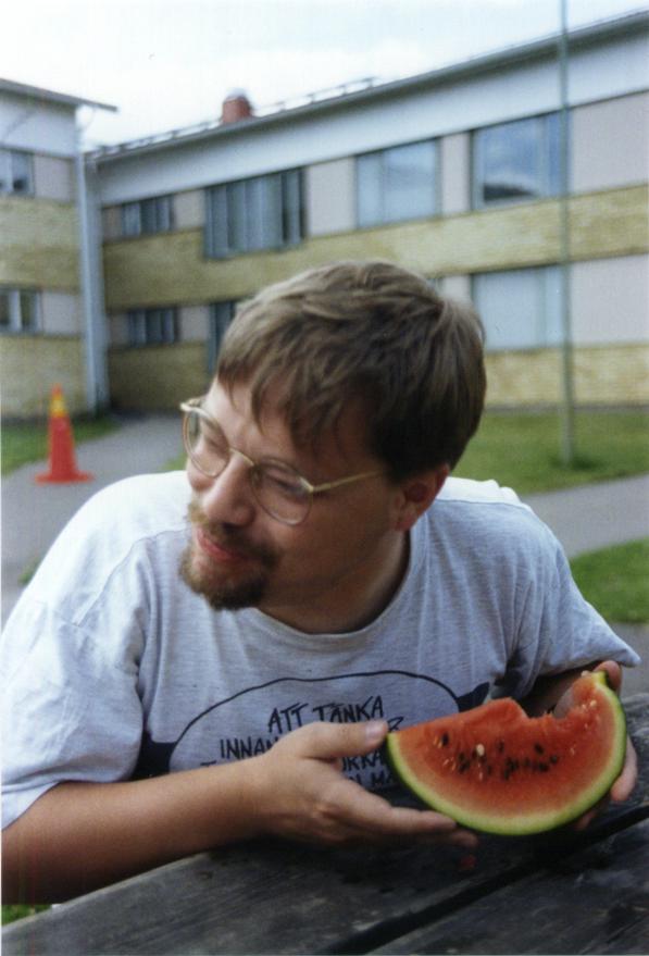 Linus äter vattenmelon