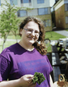 Jenny med ett knippe persilja i handen