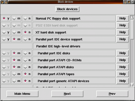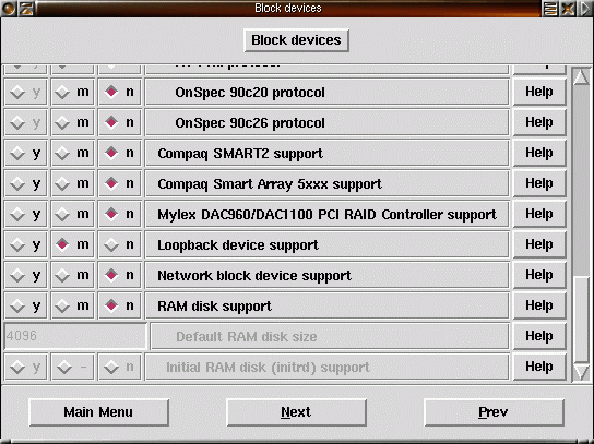 11) Mycket av det övriga under block devices kan slås av. Loopbacksupport är stöd för att montera in imagefiler (råkopior) av disketter CD-skivor etc. |