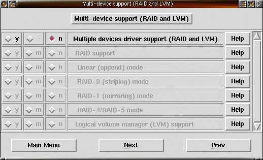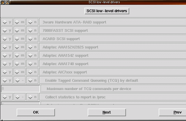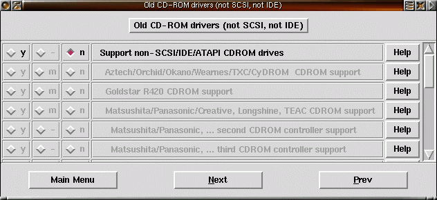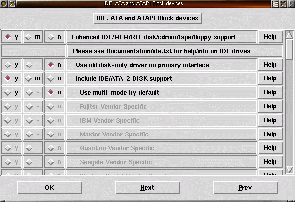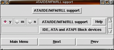 22) Säg Y på Enhanced IDE/MFM/RLL och IDE/ATA-2 om du använder IDE-diskar och har ditt root-filsystem på en av IDE-diskarna. |