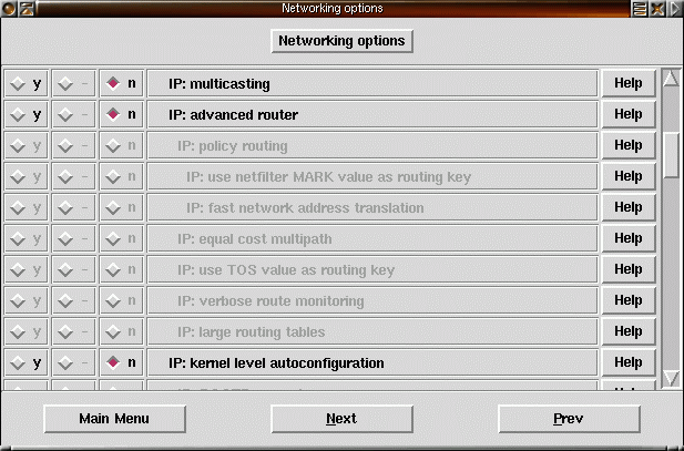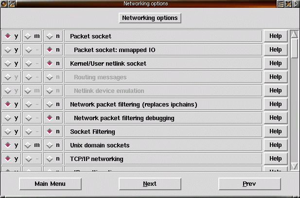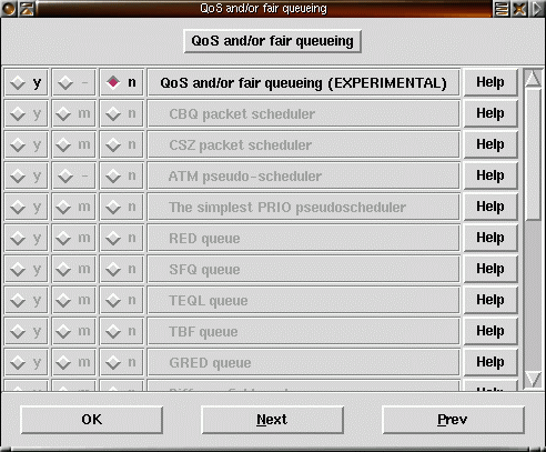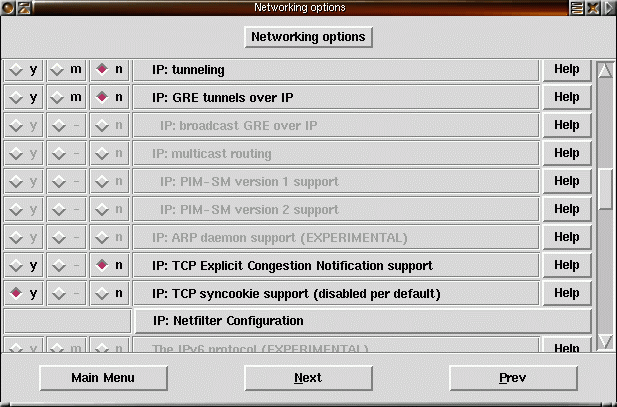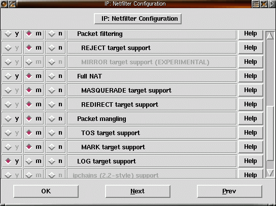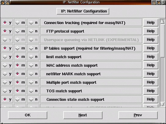 17) Resten av brandväggsstödet, NAT, masquerading, TOS etc. låter vi kompileras som moduler. |