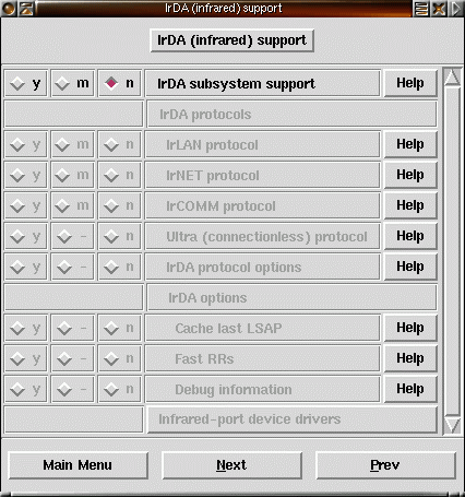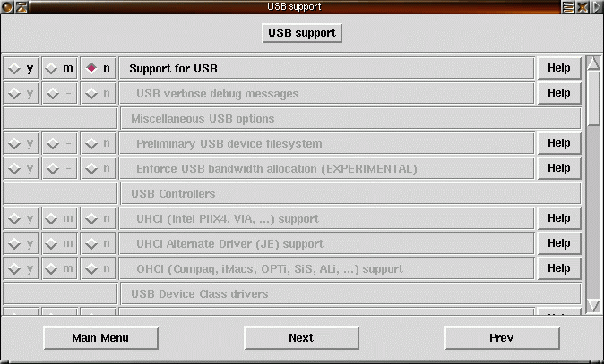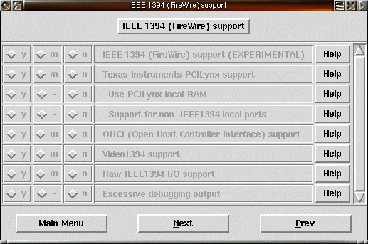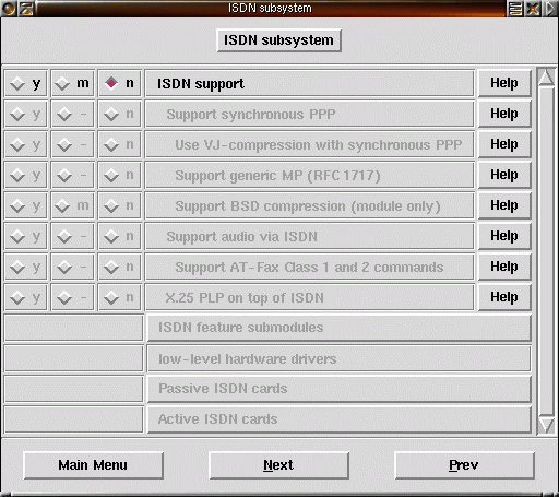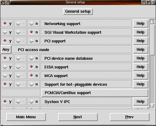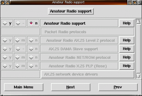 make xconfig startar ett menybaserat grafisk konfigurationsgränssnitt. Här visas exempel på hur det kan se ut. Klicka på bilderna för att få en större bild.