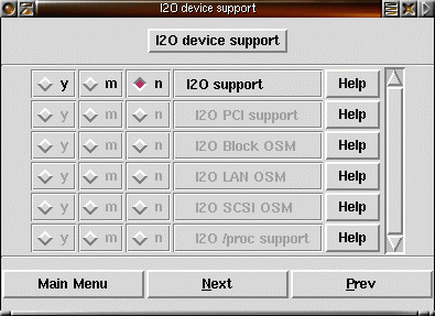 27) Intelligent Input/Output (I2O) är stöd för drivrutiner delade i två delar en operativsystemsdel, OSM, och en hårdvaruberoende del, HDM. Om du är osäker säg N. |