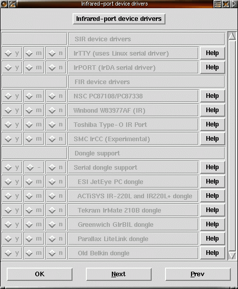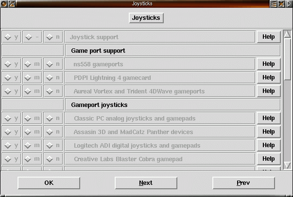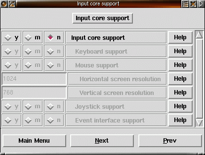 37) Direct Rendering Infrastructure är en nyhet i XFree86 version 4. Här är kerneldelen av den. Läs mer i hjälpen och dokumentationen till XFree86. Förutom det kan du välja stöd för olika grafikkort. |