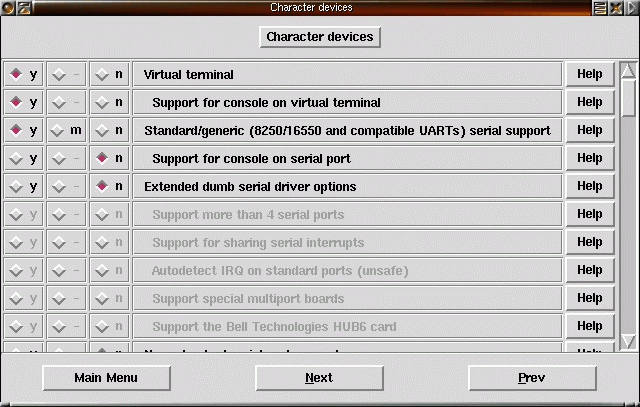 36) Virtual terminal och console on virtual terminal behövs för att få virtuella konsoler i din Linux. Som manualen säger kan du inte göra så mycket utan virtuella konsoler. 8250/16550 UART är hårdvaran till den vanliga serieporten. |