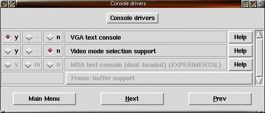 52) Framebufferstödet är experimentellt. Det ger möjlighet för applikationer att via ett väldefinierat gränssnitt komma åt grafikkorts framebuffers. Om du är osäker säg n. |