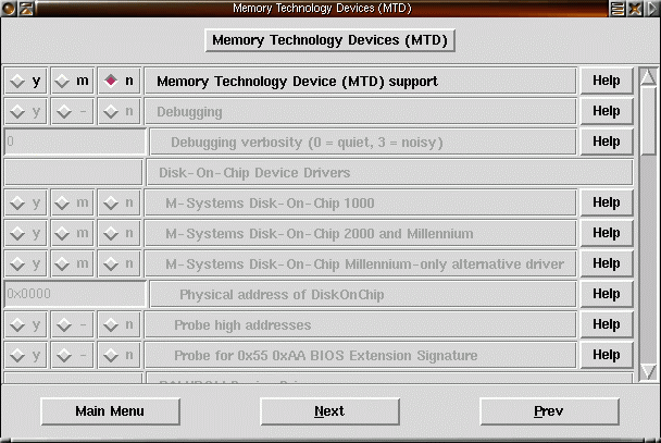 Menuconfig ser ut enligt följande: